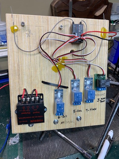 I gutted all the wiring and completely remade the RC board. It now has the sound card mounted directly on it. It also has a larger 24V to 12V converted as well as a 12V to 5V converter that is used to power the RC relays. Bus bars were added to make things neat and tidy. It looks much different now but it now totally self-contained. Only the batteries and motors are external to the board.