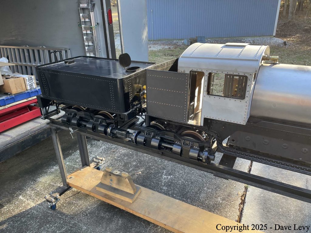 As time went by and I was thinking about this, one day a Facebook post appeared asking if anyone knew of a Shay for sale. I quickly raised my hand and started a conversation with the poster. After some back-and-forth, he said he wanted to come over and see it, along with a couple of friends and family. The visit was soon accomplished, and, after a few days of deliberation, he decided he wanted to buy it. A deposit was made to hold it while he obtained the balance. Unfortunately for the buyer, Hurricane Helene arrived a few weeks later. His home and surrounding area near Ashville, NC was severely impacted. I was more than happy to extend the final payment deadline in light of the circumstances. Finally, in late January 2025, he was ready to complete the purchase. On February 4, around 6pm., he arrived. We loaded her up, along with the boxes of remaining castings and appliances, and she was soon on her way to North Carolina. I am sure she will be very happy there as they complete her construction. One day, I hope to visit and get a ride behind her.